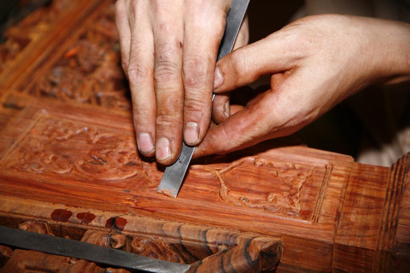 木雕,作為一門(mén)手藝,如今已越來(lái)越不為人們所熟知,而最寶貴的也是最值得最希望被流傳下來(lái)的——手工木雕,也漸漸失去了它固有的文化價(jià)值,消退在滾滾的歷史塵埃中,那一張張不再光鮮亮麗的古老桌床,那一條條開(kāi)始掉色搖晃的凳椅幾案,還有那些,早已失去了原本味道,一件件不再完整清晰的手工藝品,共同述說(shuō)著的,是一個(gè)我們這些生活于鋼筋混凝土高樓大廈里的人們永遠(yuǎn)無(wú)法體會(huì)感受的到美,它是那么近,近到可以就在我們眼前,又是那么遠(yuǎn),只留存在我們的腦海里,一代代人的記憶,慢慢沉淀......