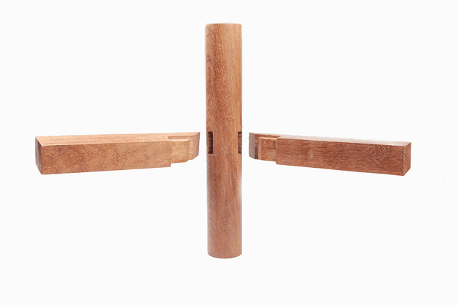 首先,榫卯結(jié)構(gòu)是榫和卯的結(jié)合,是木件之間多與少、高與低、長與短之間的巧妙組合,這種組合可有效地限制木件之間向各個(gè)方向的扭動(dòng)。而鐵釘連接就做不到。好比,用鐵釘將兩根木棖做T字型組合,豎棖與橫棖很輕易被扭曲而改變角度,而用榫卯結(jié)合,就不會(huì)被扭曲。